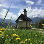 山景色を望むFerienwohnung Lederhose ビショフスヴィ-ゼンはベルヒテスガ-デンから約3.1kmに位置しています. これにあるのは1のベッドル-ム,1のバスル-ム及び器具でいっぱいの台所です.